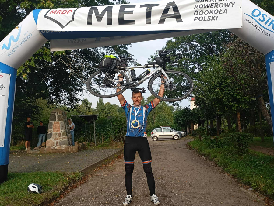 Mieszkaniec Radzionkowa Krzysztof Pakuła na mecie Maratonu Rowerowego Dookoła Polski!
