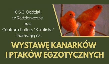 Centralne Stowarzyszenie Ornitologiczne Oddział Radzionków oraz Centrum Kultury "Karolinka" zapraszają na Wystawę Kanarków i Ptaków Egzotycznych.